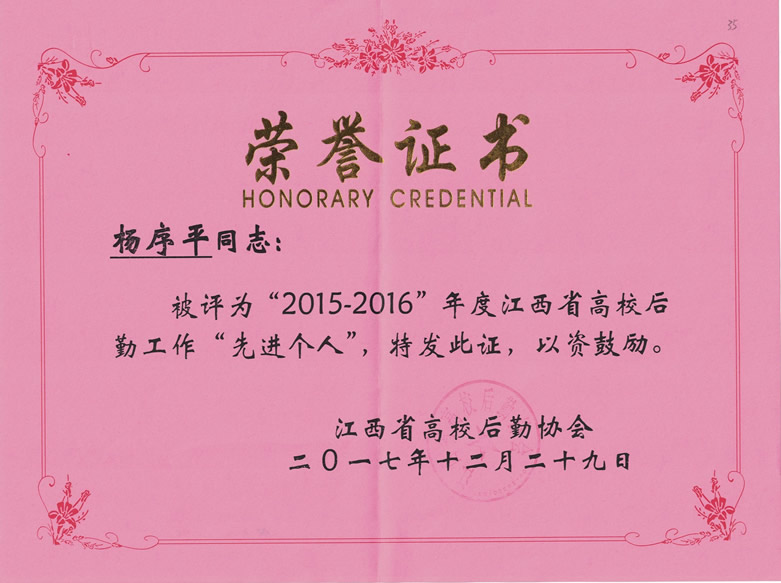 會(huì)上,校黨委委員劉超當(dāng)選江西省高校后勤協(xié)會(huì)常務(wù)理事;我校后勤管理處分別榮獲“江西省高校后勤工作先進(jìn)單位”和“江西省高校后勤工作先進(jìn)個(gè)人”榮譽(yù)稱號(hào)。
