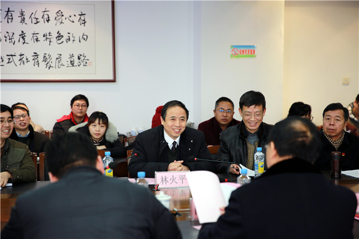 1月19日下午,市直機關工委陳皋副調研員一行3人來我校進行2017年度黨建工作現場考核和測評工作。校黨委書記林火平,校黨委委員、副校長張成斌及學校各總支書記、黨員代表共30余人參加了考核匯報及測評會。