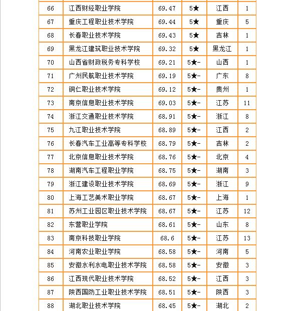 3月23日上午,首屆全國高職高專“優質校”建設與評價論壇在杭州召開。會議正式發布了2018年中國高職高專院校競爭力排行榜。我校在《2018年-2019年中國高職高專院校競爭力排行榜》上位列第66名,江西省第1名,綜合競爭力為五星級。