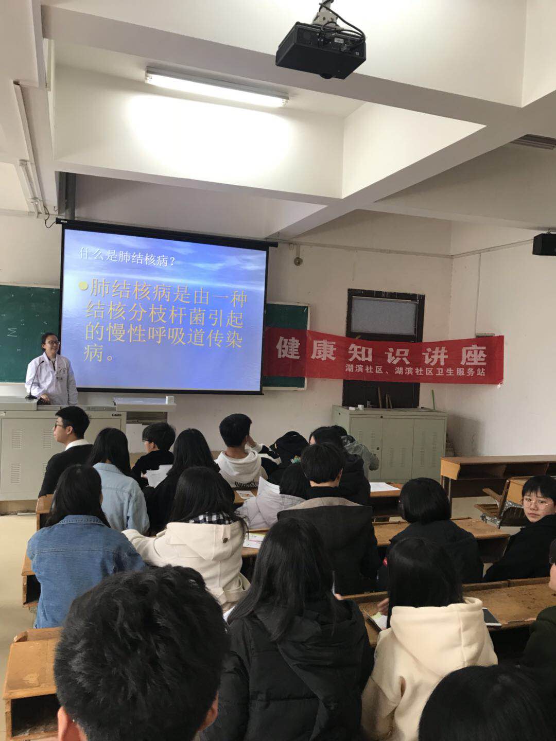 活動(dòng)現(xiàn)場,組織者通過主題橫幅、圖片展板、義診活動(dòng)、發(fā)放宣傳材料、現(xiàn)場解答、專家講座等形式向師生廣泛宣傳結(jié)核病及春季傳染病防控知識(shí)。活動(dòng)中各位專家向前來咨詢的師生耐心解答春季傳染病防治知識(shí),義務(wù)給師生測血壓體驗(yàn),并詳細(xì)解答學(xué)生提出的疑難問題;講座中,疫控中心吳醫(yī)師從學(xué)校傳染病防控基本要求,結(jié)核病的傳染源、傳播途徑,結(jié)核病患者的臨床表現(xiàn),講解了學(xué)校和學(xué)生如何做好肺結(jié)核病及春季傳染病防控工作,活動(dòng)受到了師生的一致好評。