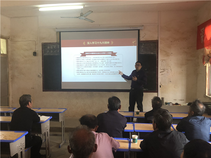黃老師緊扣學(xué)習(xí)黨的十九大精神,結(jié)合基層實(shí)際,黨課從四個(gè)方面進(jìn)行:一是深入學(xué)習(xí)十九大精神;二是提高保障和改善民生水平;三是中國(guó)特色鄉(xiāng)村振興之路;四是不忘初心跟黨走。