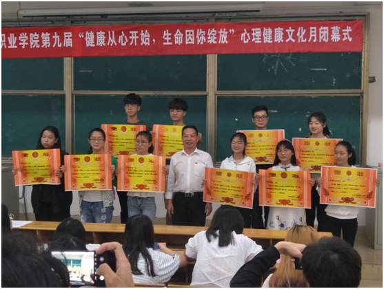 思政部、心理咨詢中心全體教師、大學生心理協(xié)會會員及2017級各班學生代表300余人參加了閉幕式。在閉幕式上,思政部負責人為文化月致閉幕詞并為獲獎班級和學生頒獎。