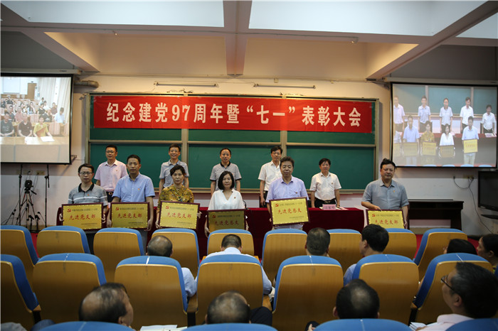 會上,新黨員面對黨旗宣誓,老黨員共同重溫入黨誓詞,新黨員代表吳樂平作了發(fā)言,校黨委副書記、常務(wù)副校長何先應(yīng)宣讀了《關(guān)于表彰2017年度黨內(nèi)先進(jìn)的決定》,與會領(lǐng)導(dǎo)給獲獎(jiǎng)的先進(jìn)基層黨組織頒發(fā)了獎(jiǎng)牌。