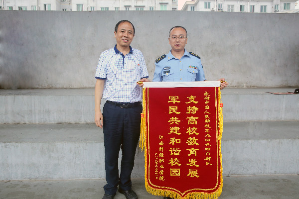閱兵式后,林火平代表學(xué)校向中國(guó)人民解放軍空軍某部贈(zèng)送了錦旗,感謝部隊(duì)對(duì)我校軍訓(xùn)工作的大力支持。校領(lǐng)導(dǎo)和部隊(duì)首長(zhǎng)還為軍訓(xùn)優(yōu)勝隊(duì)伍頒發(fā)了錦旗。