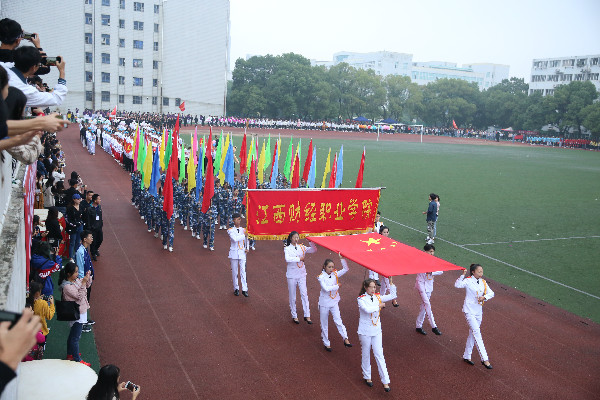 開幕式表演結束后,校黨委副書記、紀委書記曹銳同志致熱情洋溢的開幕詞,表達對大會的良好祝愿。校黨委委員、副校長張成斌同志鄭重宣布大會開幕。在激昂的運動員進行曲中,國旗隊、彩旗隊及各二級學院運動員代表方陣依次入場,豪邁自信的聲音響徹整個田徑場的上空。