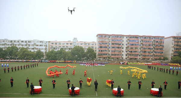 本屆運動會開幕式表演分為上、中、下三篇。上篇“龍騰盛世”通過激昂豪邁、氣勢如虹的龍獅表演,彰顯出空軍94940部隊官兵氣吞山河的英雄氣概,展現出財院人不屈不撓、迎難而上、圖強進取的奮斗精神。中篇“悠遠流長”為大家呈現了美輪美奐的大型古典舞蹈——水袖舞,充分展現出財院濃厚的文化底蘊和愉悅、和諧、健康的文化氛圍。下篇“青春飛揚”將武術表演和街舞表演融為一體,展現出財院積極、健康、活躍的體育文化氛圍,表達了學子們對和諧校園的熱愛,對學院強大、發展的熱望。