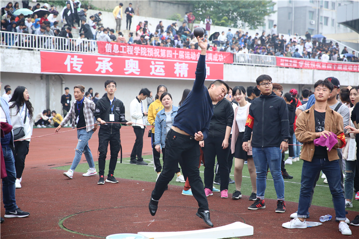 本屆的教職工趣味運動會設了三個團體項目:鉛球、立定跳遠和4*100米混合接力。個人項目有:女子跳繩、男子投籃、男女飛鏢、男女保齡球。離退休老同志的比賽項目有:飛鏢、保齡球、趕“豬”跑。全校共有200多名教職工報名參加了本次趣味運動會。