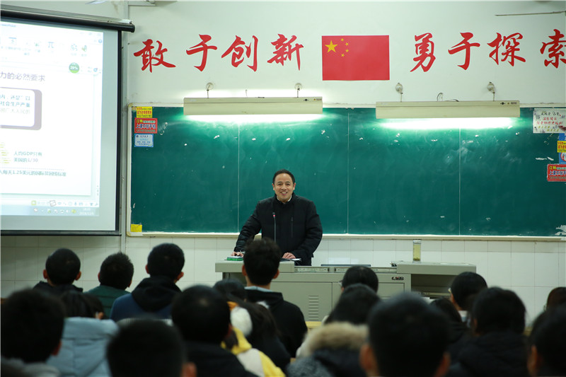 2018年12月6日下午,校黨委書記林火平教授在教學(xué)樓408教室講授我國改革開放四十年偉大成就,本科部2018級學(xué)生參加。