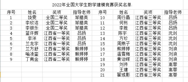 隨后,主持人宣布為2022年全國大學生數(shù)學建模競賽獲獎學生頒獎,在一陣陣熱烈的掌聲中,7支代表隊的21名同學上臺領獎,指導老師為獲獎學生頒發(fā)了獲獎證書。2022年數(shù)學建模競賽獲獎名單如下: