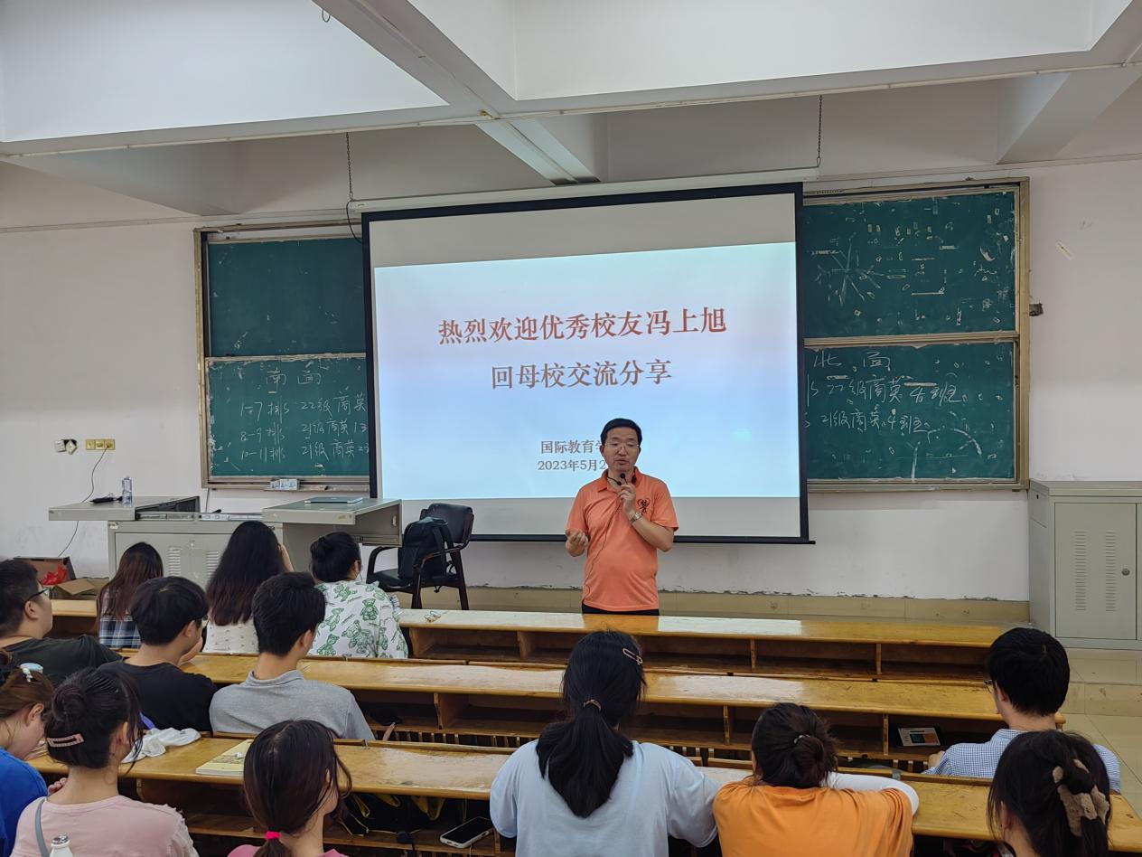 為進一步增強學生對未來職業的認知和理解,5月27日下午,國際教育學院在綜階五教室舉辦優秀校友成長分享活動。優秀校友寧波銳泊特影視設備有限公司董事長、學校校友會寧波校友分會籌備組召集人馮上旭先生應邀進行了分享。分享活動由國際教育學院黨總支書記王勝華主持,學院黨政辦主任王禾傳出席,22級商務英語專業全體學生及21級商務英語專業部分學生參加。
