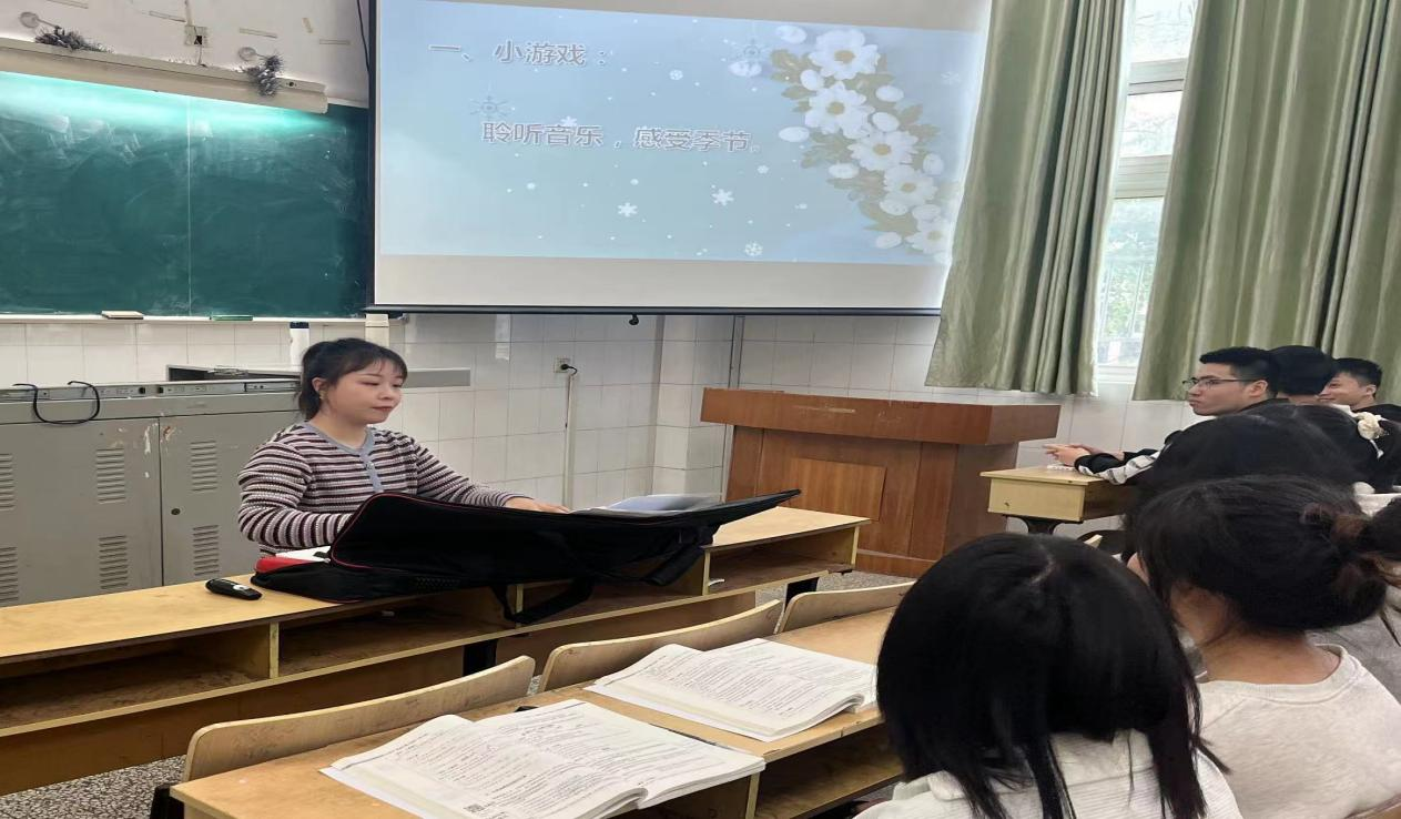 4月26日下午,中文教研室呂相宜老師在教學(xué)樓210教室開展《2022年北京冬奧會(huì)主題曲—<雪花>賞析》公開課教學(xué)。呂老師在音樂上有自己的見解,課堂上語言生動(dòng)、教態(tài)自然,美妙的鋼琴聲把同學(xué)們拉進(jìn)了課堂,課程從“聆聽音樂,感受季節(jié)”小游戲環(huán)節(jié)開始,引導(dǎo)同學(xué)感受音樂中的季節(jié)變換。以體驗(yàn)感觸音樂為主,以情貫穿始終,通過欣賞、講解和學(xué)唱歌曲等教學(xué)步驟,將堅(jiān)韌高潔的奧運(yùn)精神有機(jī)融入了課堂教學(xué)中。