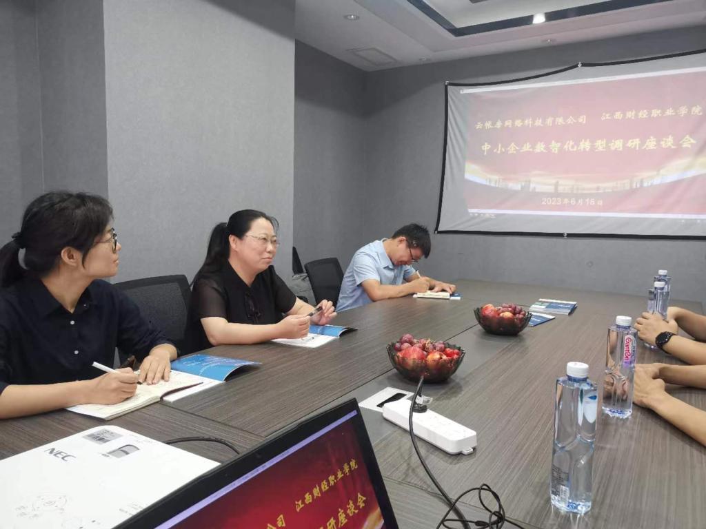 6月16日上午,會計學院院長萬凱,副院長齊潔、教師鄧鵬赴云帳房網絡科技有限公司江西分公司開展中小企業數智化轉型調研,云帳房江西分公司總經理徐康等進行了熱情接待。