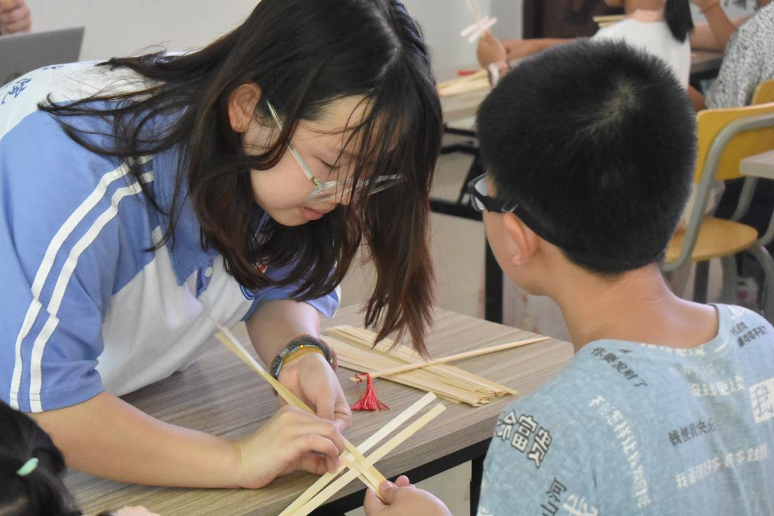 活動第二天,織竹繪夢社會實踐隊在文化站舉行了一場別開生面的手工藝術(shù)體驗活動,黃仕豪老師以生動有趣的方式向小朋友們介紹了竹編的歷史、原理和制作工藝。他通過講解與實際演示相結(jié)合的方式,讓孩子們了解到竹編作為中國傳統(tǒng)的非遺文化之一,具有悠久的歷史和獨特的技藝。在活動現(xiàn)場,每位小朋友都獲得了一份手工竹編材料包,他們躍躍欲試地打開材料包,團(tuán)隊成員在旁耐心地指導(dǎo)他們?nèi)绾尉幙棥T诰幙椀倪^程中,小朋友們互相交流、互相幫助,不僅培養(yǎng)了他們的動手能力和團(tuán)隊合作意識,還增強了孩子們的自信心和創(chuàng)造力。在黃老師的指導(dǎo)下,小朋友們小心翼翼地交叉編織,逐漸展現(xiàn)出自己獨特的創(chuàng)意,紛紛制作出了竹扇、竹編小動物等作品,展示出無窮的想象力和創(chuàng)意。