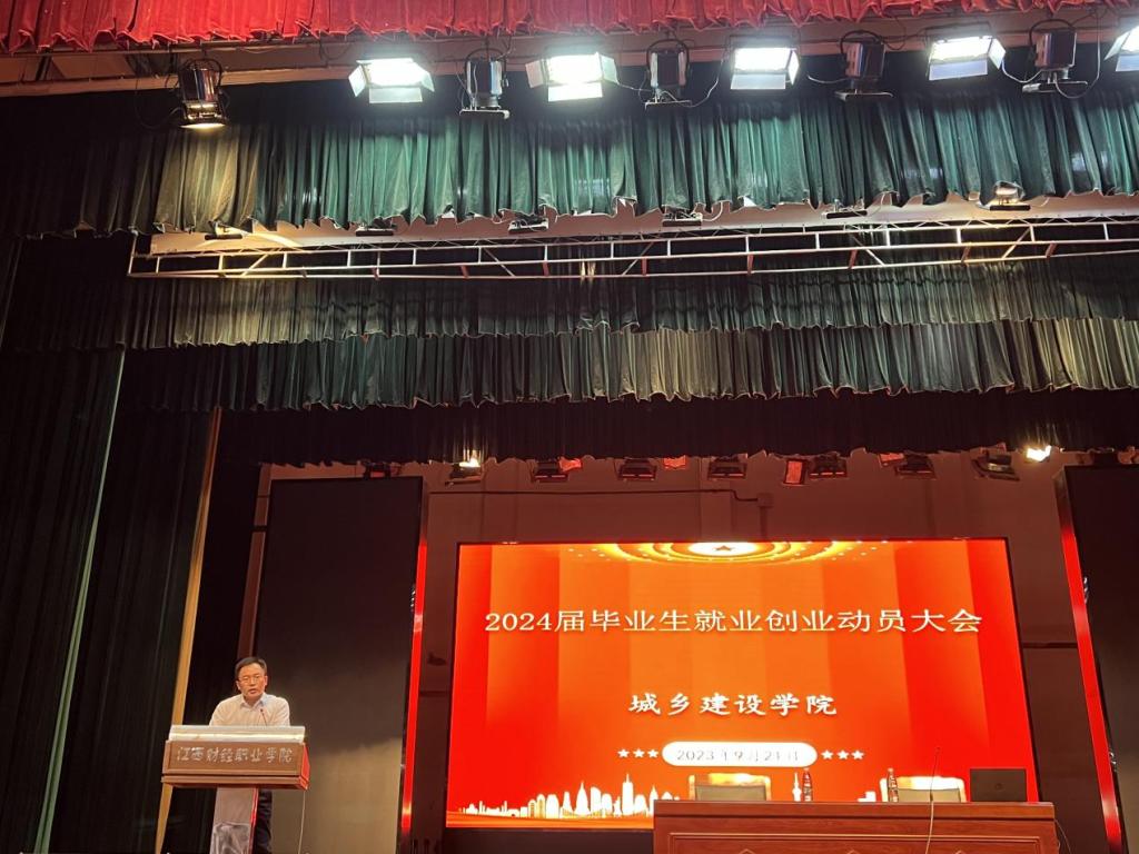 在喜迎中華人民共和國成立74周年之際,為貫徹落實黨中央、國務院、省、市、校各項就業政策落實,加強畢業生就業創業政策宣傳,引導、幫助畢業生盡早就業,順利就業、高質量就業,城鄉建設學院于9月21日在校英才交流中心召開2024屆畢業生就業創業動員大會,學院2024屆全體畢業生400余人參加。優秀校友王文靜、校黨委委員劉鋒、校大學生心理健康中心負責人王美娟、學院黨政班子、輔導員(班主任)及2024屆畢業生等參加了動員大會,會議由城鄉建設學院黨總支副書記舒欣主持。