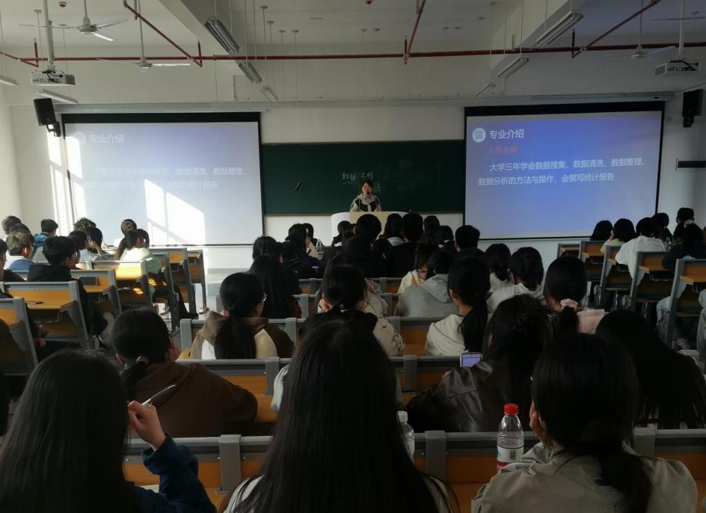 為增強(qiáng)2023級(jí)統(tǒng)計(jì)與大數(shù)據(jù)分析專業(yè)學(xué)生的專業(yè)認(rèn)知度,幫助學(xué)生提升學(xué)習(xí)熱情、明確學(xué)習(xí)目標(biāo)、做好學(xué)習(xí)規(guī)劃,2023年10月11日下午16點(diǎn)20分,數(shù)字經(jīng)濟(jì)學(xué)院在八里湖校區(qū)1號(hào)教學(xué)樓517教室舉辦了“四具備”人才培養(yǎng)系列活動(dòng)之“統(tǒng)計(jì)與大數(shù)據(jù)分析” 專業(yè)認(rèn)知講座。講座由統(tǒng)計(jì)調(diào)查教研室主任王利副教授主講,2023級(jí)統(tǒng)計(jì)與大數(shù)據(jù)分析專業(yè)學(xué)生參加。