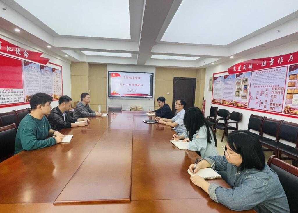為研判分析2024屆畢業生就業形勢,扎實做好2024屆畢業生就業工作,2023年10月19日上午,國際教育學院2024屆就業工作推進會在綜合樓918會議室舉行。會議由總支書記王勝華主持,副院長楊瑞(主持工作)、副院長曹云波、總支部委員兼辦公室主任王禾傳、就業干事葉慎奎,畢業班班主任業方瓊、李穎參加。