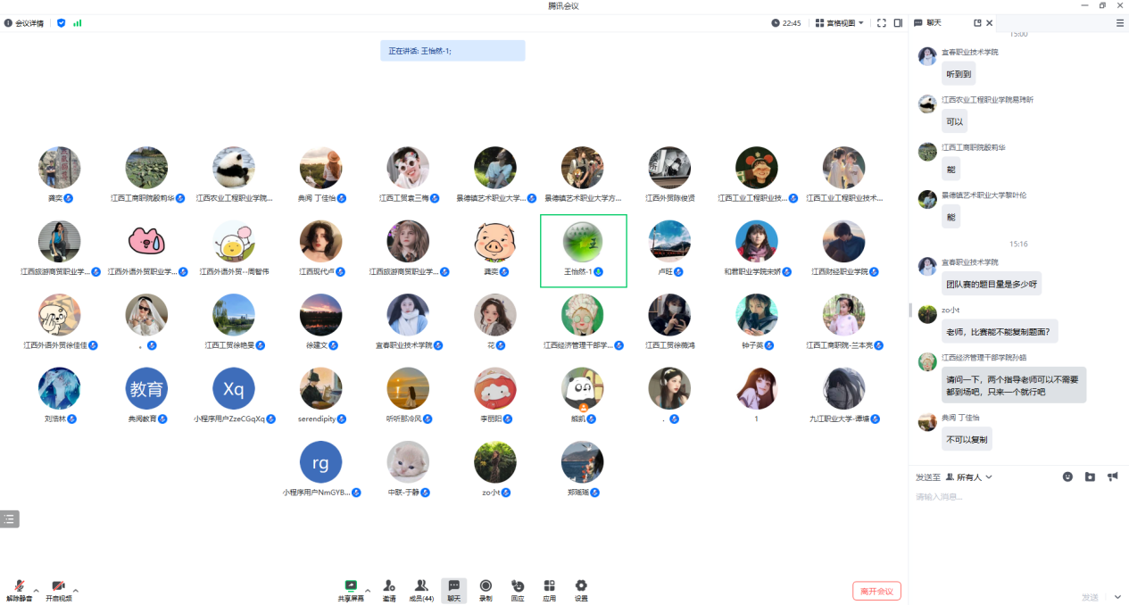 由我校承辦的2023年江西省職業院校技能大賽(高職組)“智慧金融”賽項將于12月10日舉行。為保證賽項順利進行,11月24日下午,我校財稅金融學院在騰訊會議上召開了賽項說明會,來自全省17所參賽院校的領隊及指導老師參加了會議。會議由財稅金融學院黨總支副書記王怡然主持。