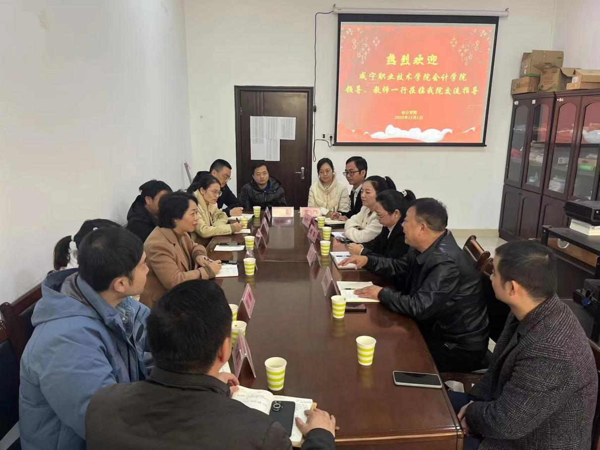 12月1日,咸寧職業(yè)技術學院會計學院院長何慧玲、黨總支書記鎮(zhèn)咸輝及骨干教師等一行6人來我院考察交流。會計學院院長萬凱、黨總支書記張家順、會計學院副院長齊潔、財稅金融學院副院長周莉、會計學院教研室主任余暉文和席偉明老師熱情接待來訪領導教師,雙方在紅樓212辦公室進行座談交流。