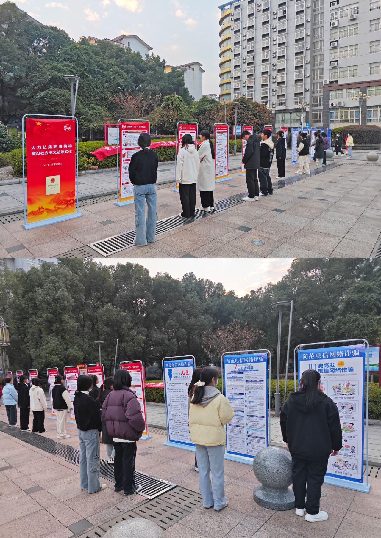 現(xiàn)代服務(wù)學(xué)院師生精心制作了宣傳展板和播放視頻,許多居民駐足觀看,現(xiàn)場(chǎng)設(shè)置了“普法崗”,現(xiàn)代服務(wù)學(xué)院法律專業(yè)教師為居民耐心講解法律法規(guī)等方面的知識(shí),讓憲法精神在心中扎根,引導(dǎo)居民學(xué)法、尊法、用法,增強(qiáng)他們的法律意識(shí);在宣傳憲法精神的同時(shí),現(xiàn)場(chǎng)同時(shí)設(shè)置了反電信詐騙的宣傳展板,學(xué)生志愿者們耐心解答現(xiàn)場(chǎng)群眾的疑問(wèn),提醒老人們注意預(yù)防電信詐騙。隨后,現(xiàn)代服務(wù)學(xué)院師生將“國(guó)家憲法日”普法宣傳及電信詐騙宣傳展板帶到了學(xué)校,在綜合樓文化廣場(chǎng)前向我們同學(xué)進(jìn)行了宣傳教育,進(jìn)一步引導(dǎo)學(xué)生樹(shù)立法治觀念,提高預(yù)防電信詐騙的意識(shí)。