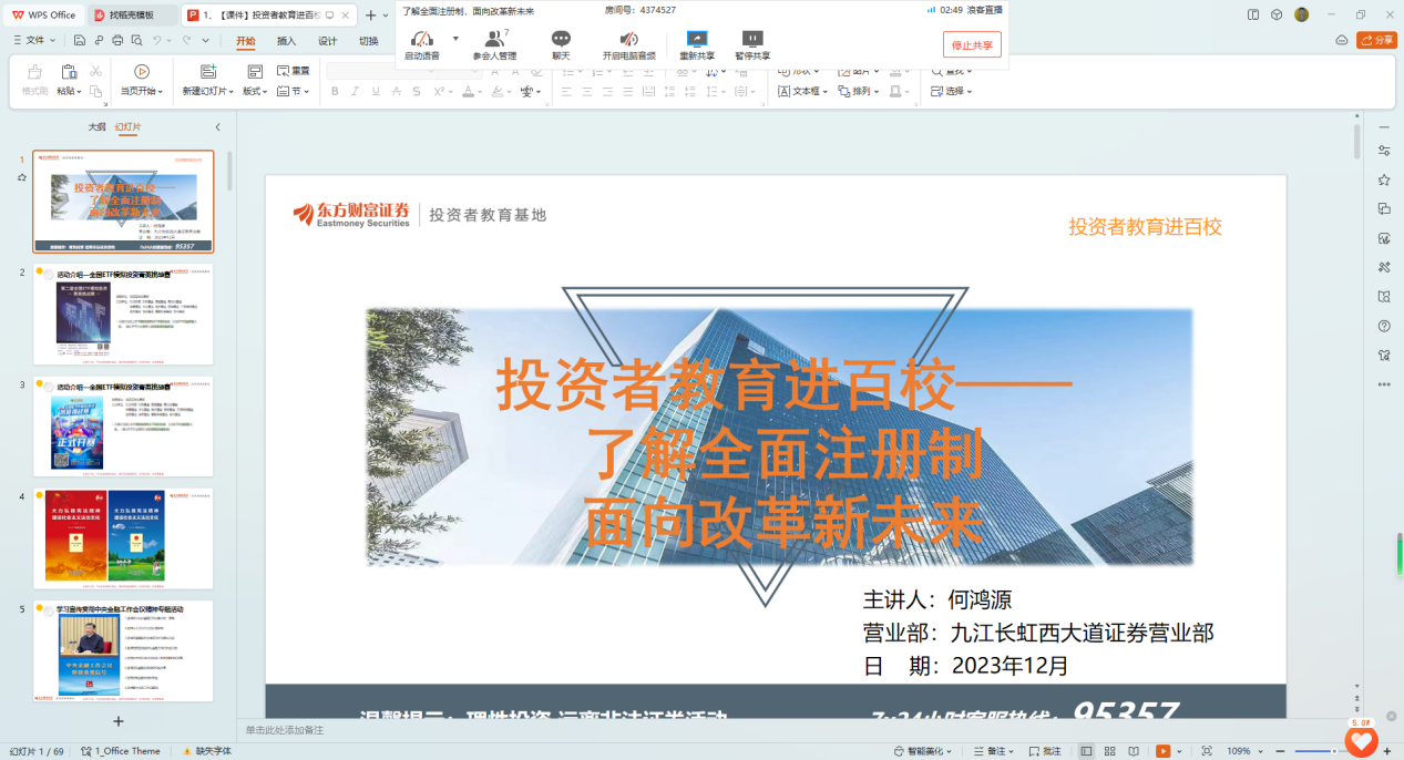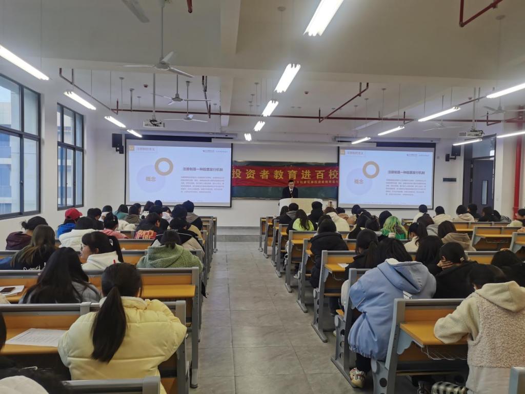活動伊始,九江營業部講師何鴻源向同學們介紹了公司基本情況、本次活動的主題和意義。隨后,講師通過生動形象、風趣幽默的方式向同學們講解了注冊制相關知識。