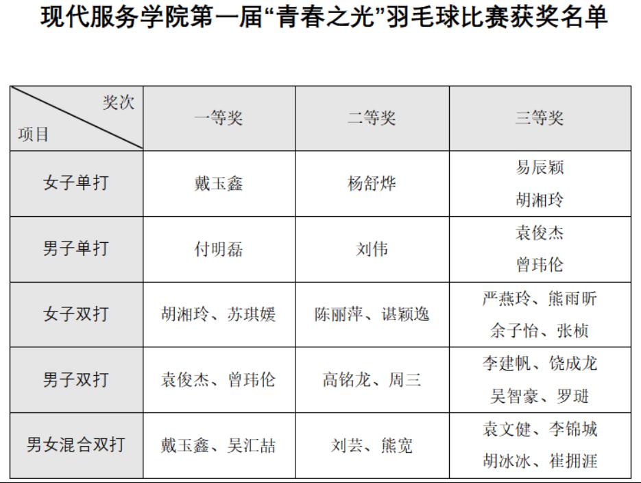 健康快樂,“羽”你同行——現代服務學院第一屆“青春之光”羽毛球賽圓滿結束