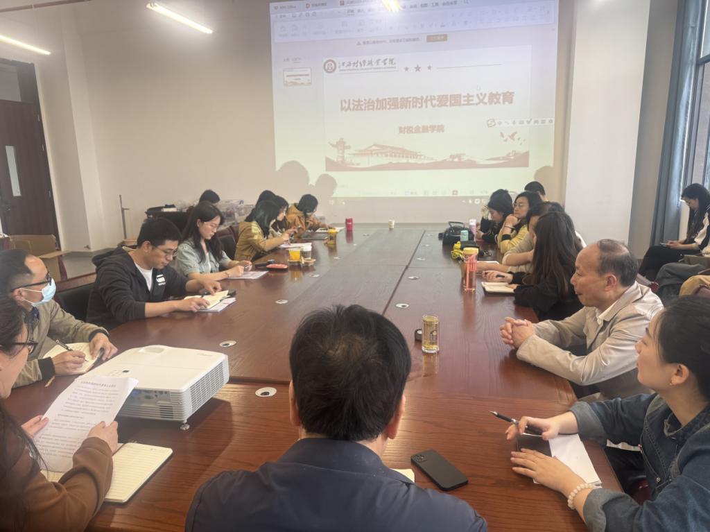 4月2日下午,財稅金融學(xué)院在八里湖校區(qū)洙泗學(xué)館B101舉辦了一場以法治加強(qiáng)新時代愛國主義教育的活動。此次活動由黨總支副書記王怡然主持,全體教職工齊聚一堂,共同學(xué)習(xí)探討如何在新時代背景下,通過法治力量進(jìn)一步加強(qiáng)愛國主義教育。