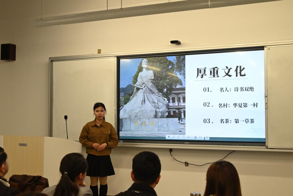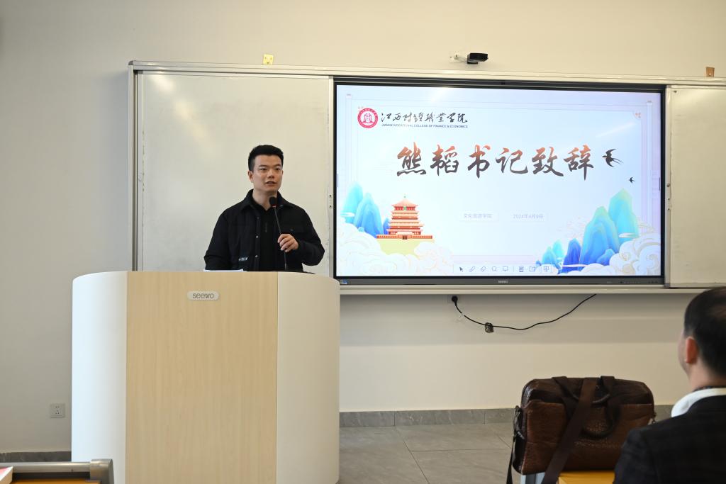 活動(dòng)伊始熊韜對(duì)本次活動(dòng)進(jìn)行了致辭,他表示文化是一個(gè)民族的靈魂,而家鄉(xiāng)文化更是一個(gè)地方的獨(dú)特標(biāo)識(shí)與精神根基。無論是鄉(xiāng)音、美食、建筑還是藝術(shù)作品,都是每個(gè)當(dāng)?shù)厝俗钪档抿湴梁妥院赖奈幕?hào)。熊韜鼓勵(lì)每一位同學(xué)常懷對(duì)家鄉(xiāng)的“文化自信”,熱愛家鄉(xiāng)的文化、精神和品質(zhì),在今后的學(xué)習(xí)和生活中應(yīng)當(dāng)積極參與社會(huì)實(shí)踐,持續(xù)深入了解家鄉(xiāng)文化,以實(shí)際行動(dòng)傳承和發(fā)揚(yáng)家鄉(xiāng)文化,讓家鄉(xiāng)優(yōu)秀傳統(tǒng)文化在新時(shí)代煥發(fā)出更加絢麗的光彩。