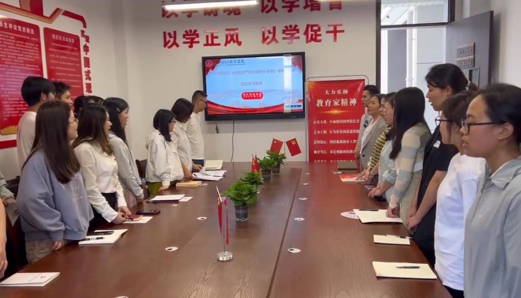 大家集中觀看了學(xué)習(xí)教育片《黨紀(jì)學(xué)習(xí)教育開課了》,學(xué)習(xí)了解《中國(guó)共產(chǎn)黨紀(jì)律處分條例》歷次修訂詳情。胡紅霞指出,開展黨紀(jì)學(xué)習(xí)教育,是加強(qiáng)黨的紀(jì)律建設(shè)、推動(dòng)全面從嚴(yán)治黨向縱深發(fā)展的重要舉措。新修訂的《中國(guó)共產(chǎn)黨紀(jì)律處分條例》是學(xué)習(xí)貫徹習(xí)近平新時(shí)代中國(guó)特色社會(huì)主義思想和黨的二十大精神的具體行動(dòng),是黨中央站在新的歷史起點(diǎn)上,對(duì)全面從嚴(yán)治黨、加強(qiáng)黨的紀(jì)律建設(shè)進(jìn)行的再部署、再動(dòng)員,作為中國(guó)共產(chǎn)黨黨員和人民教師,應(yīng)當(dāng)積極強(qiáng)化政治理論學(xué)習(xí)、提高政治站位、深刻理解并貫徹執(zhí)行新修訂的《中國(guó)共產(chǎn)黨紀(jì)律處分條例》精神,以更高標(biāo)準(zhǔn)要求自己,牢記為黨育人、為國(guó)育才的初心使命,聚焦主業(yè)主責(zé),凸顯實(shí)干擔(dān)當(dāng),引導(dǎo)教育學(xué)生樹立正確的世界觀、人生觀和價(jià)值觀。要在崗位上做好表率,保持良好的工作作風(fēng)和形象,以實(shí)際行動(dòng)堅(jiān)定擁護(hù)“兩個(gè)確立”、堅(jiān)決做到“兩個(gè)維護(hù)”。胡紅霞重點(diǎn)剖析了違紀(jì)典型案例,以案說紀(jì),指出學(xué)黨紀(jì)做到四個(gè)務(wù)必:一是學(xué)《條例》,從身邊人身邊事中受警醒;二是學(xué)《條例》,矯正言行、遵規(guī)守紀(jì);三是學(xué)《條例》,增強(qiáng)干事創(chuàng)業(yè)積極性;四是學(xué)《條例》,提升依規(guī)依紀(jì)依法履職水平。