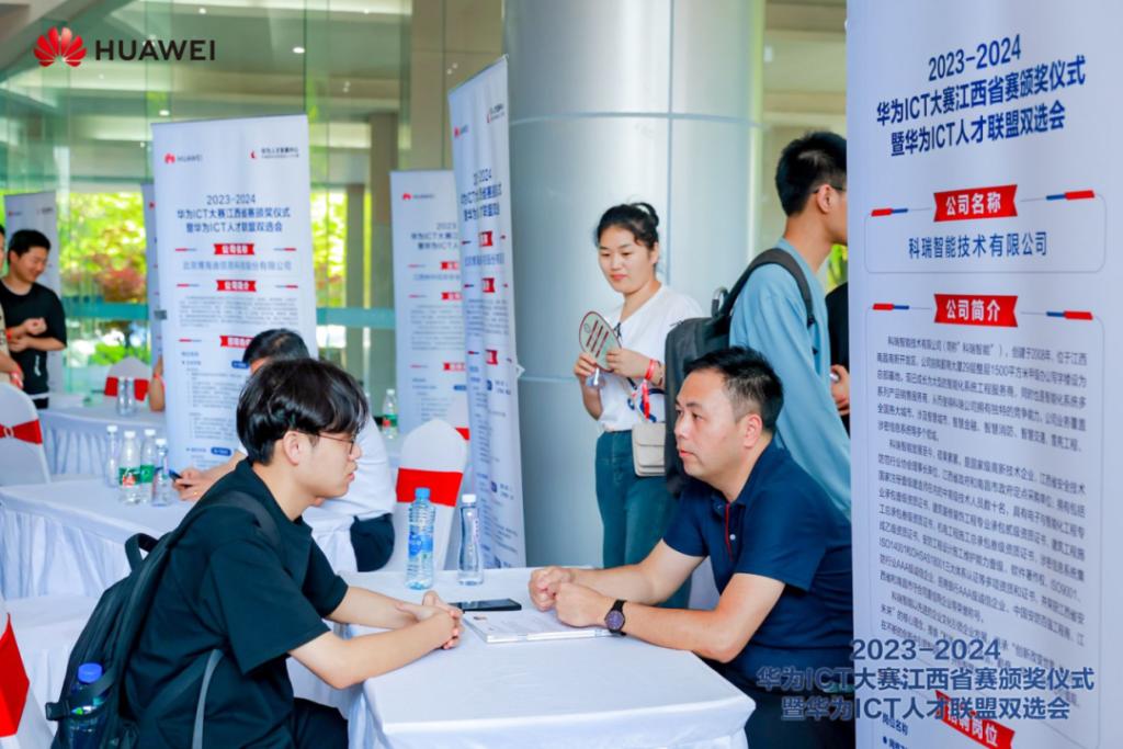 本次的“2023-2024華為ICT大賽江西省賽頒獎(jiǎng)儀式暨華為ICT人才聯(lián)盟雙選會(huì)”成功舉辦,一方面幫助大學(xué)生對(duì)華為人才生態(tài)、華為最新的信息技術(shù)以及華為人才的需求和自我發(fā)展有了一個(gè)清晰、準(zhǔn)確的認(rèn)識(shí),另一方面也借助大賽傳播ICT前沿技術(shù)和知識(shí),進(jìn)一步拉近了學(xué)生與行業(yè)、技術(shù)間的距離,最終達(dá)到“以賽促教、以賽促學(xué)”的目的。