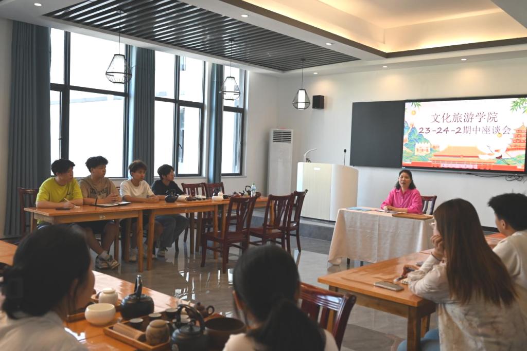 為進一步加強教學管理,了解本學期學生在教學運行及管理方面的建議和需求,共同促進教學質量提升,5月28日下午,文化旅游學院在八里湖校區白鹿學館C404茶藝實訓室開展2024春季學期期中座談會,座談由文化旅游學院負責人易嬌艷主持,22、23級各班學生代表參會。