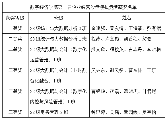 來自數字經濟學院22級、23級的9支隊伍報名參賽,36名同學同臺競技,他們展現出良好的職業技能、職業素養和團隊精神。經過3個小時的激烈角逐,最終,比賽決出一等獎團隊1個、二等獎團隊2個、三等獎團隊3個。獲獎名單如下: