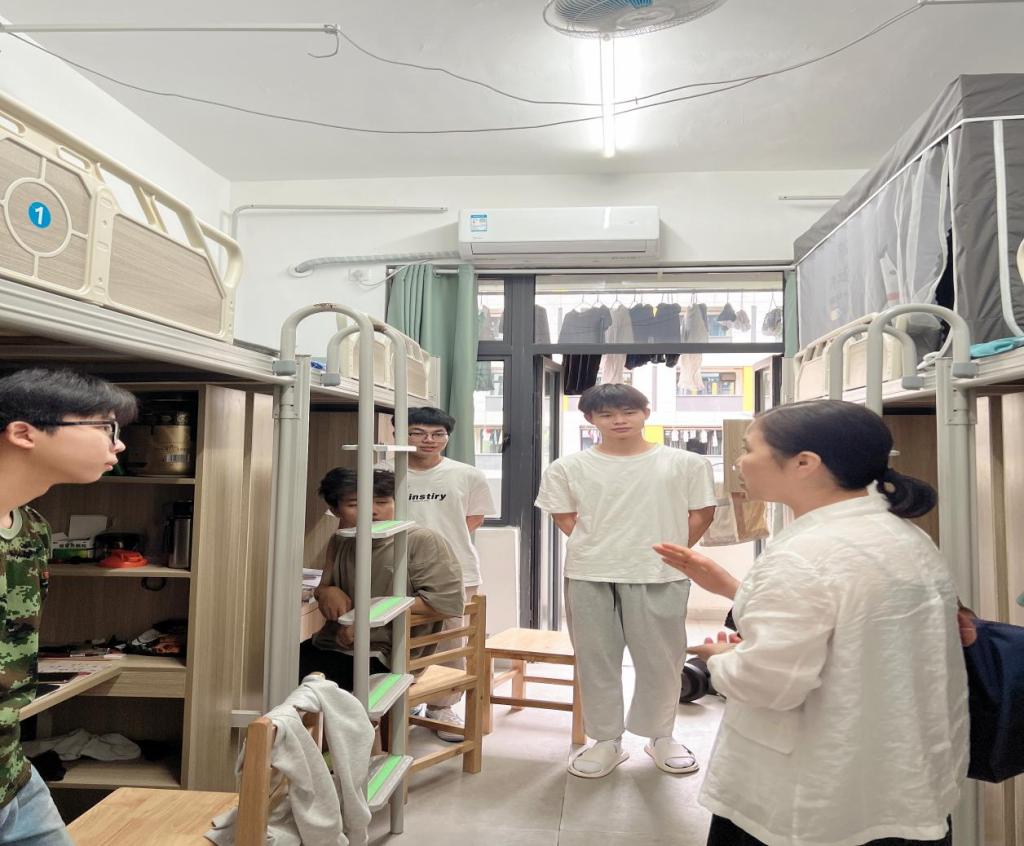 我院黨政班子及全體班主任深入學生宿舍走訪。黨總支書記胡紅霞、輔導員、班主任和同學們聊天談心,詳細了解學生在宿舍的生活情況、課余活動安排以及未來規劃。同時叮囑學生注重傳統美德及文明禮儀的培養,時刻保持整潔的宿舍環境。