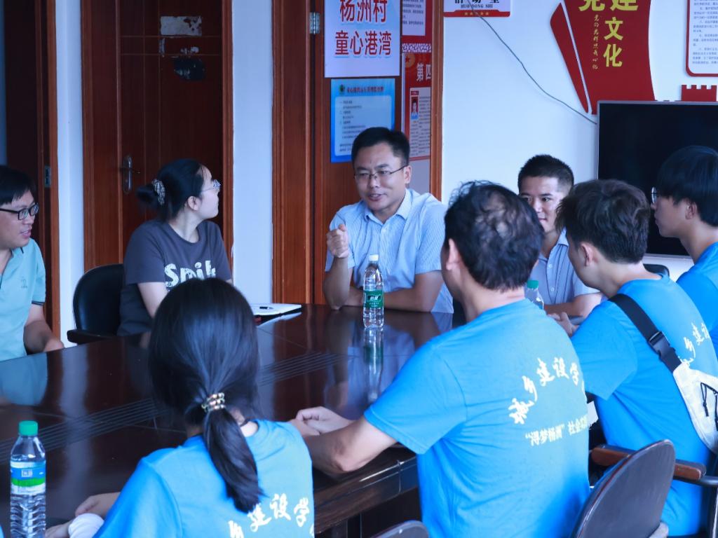 圖為:村支書(shū)向?qū)嵺`隊(duì)介紹楊洲村當(dāng)?shù)貙?shí)際情況。