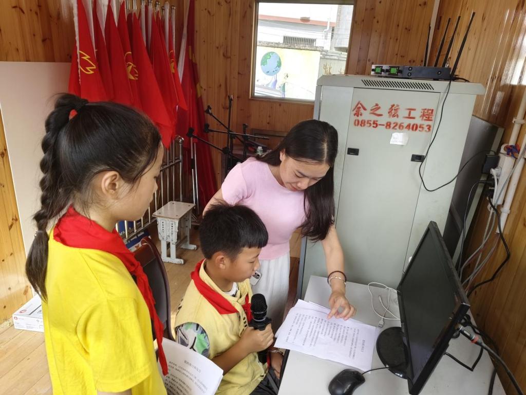 舟溪小學廣播站的播音員正在深情朗誦著詩歌《我的南方和北方》。吳興菊是學校廣播站的指導(dǎo)老師,看見我們來,介紹著這兩位五年級的孩子:“這是我們廣播站的王牌呢!”