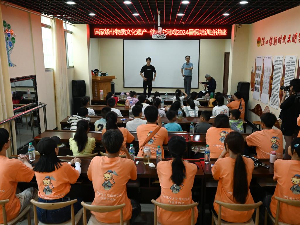 同學們來到國家級非物質文化遺產修水寧河戲2024暑期培訓班現場,認真聆聽了傳承人劉向陽精彩生動的專題講座。據劉向陽介紹,修水寧河戲舊時俗稱寧州大戲,源于明清,興于溪口,修水也稱寧州,寧河戲由此得名,清朝乾隆年間,寧河戲進入鼎盛期,出現了寧州十八班的繁榮景象,被譽為“戲曲中的瑰寶”。他講述了寧河戲起源與發展的歷史沿革、藝術特色以及在當地的深遠影響。實踐隊員通過聆聽此次專題講座,進一步認識到民間藝術是人民的藝術,體現了勞動人民的智慧和創造力,百姓喜歡的藝術才具有強大的生命力。