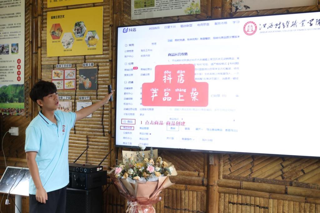 7月12日上午,實踐隊根據農旅產業基地的發展痛點問題,結合實踐隊員自身專業知識和實踐技能,在基地會議室開展了新媒體運營小課堂,為基地的幾位負責人講解了線上電商平臺注冊及運營全流程以及如何利用身邊的工具進行視頻拍攝剪輯。