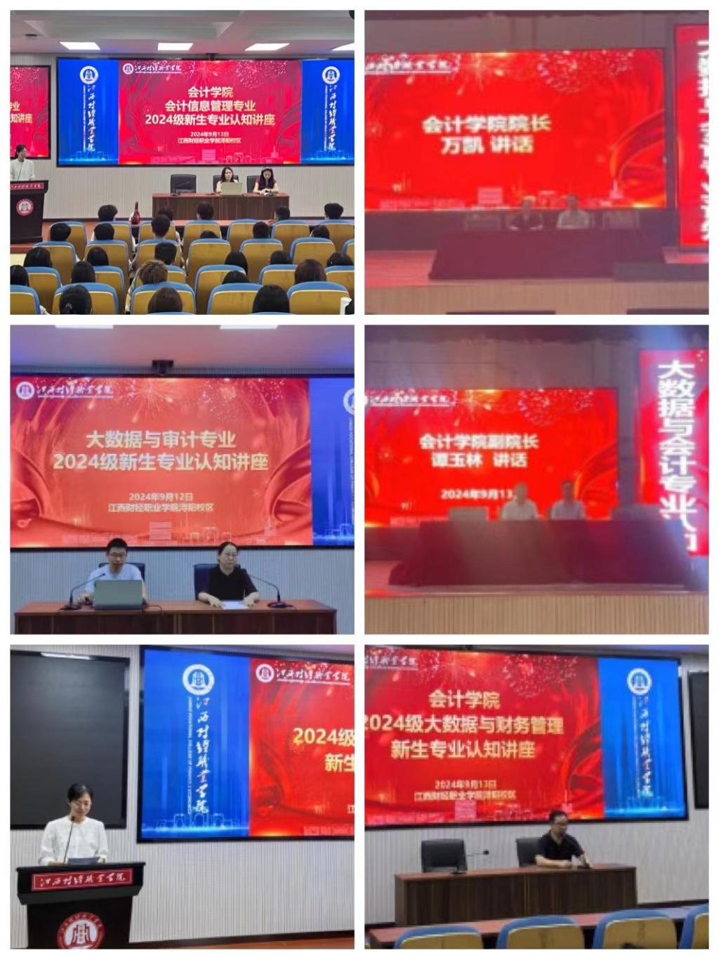為了讓會計學院2024級新生了解所學專業,快速適應大學生活。2024年9月11日—9月13日,會計學院分專業、分批次在潯陽校區英才交流中心、綜合樓7樓報告廳開展了2024級大數據與會計、大數據與審計、大數據與財務管理和會計信息管理專業認知講座。會計學院院長萬凱,副院長譚玉林、齊潔,專業教研室主任以及企業導師、學院教師和2024級全體新生認真聆聽了講座。