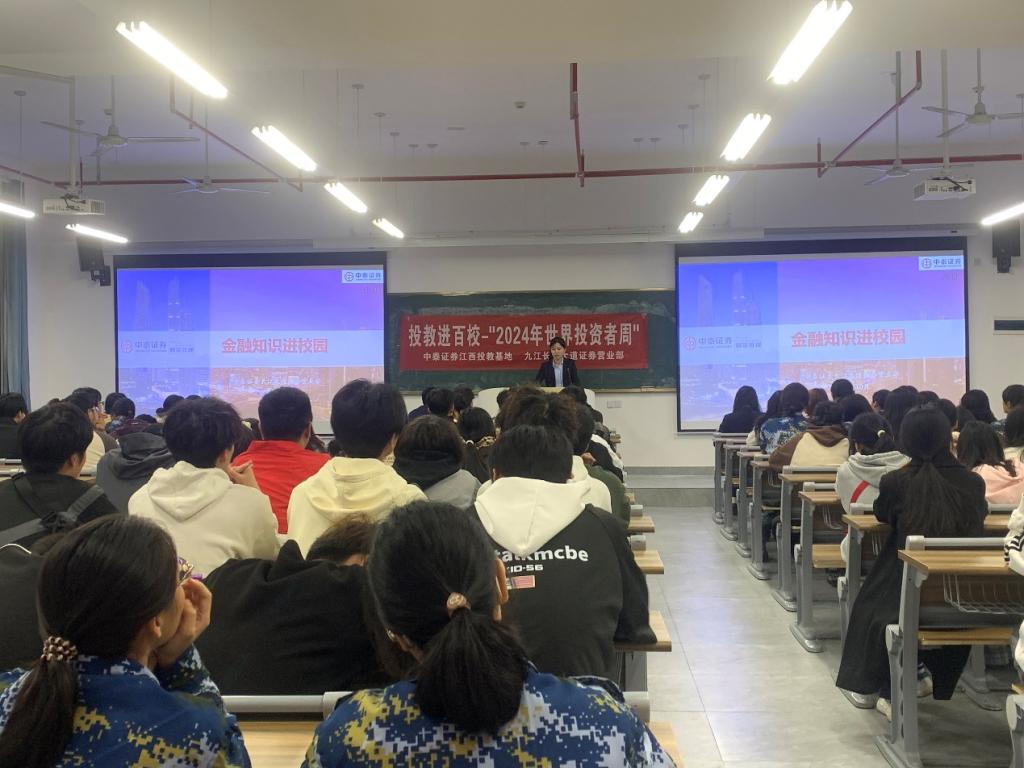 為增強學生的金融素養,提升其風險防范意識,10月23日,財稅金融學院攜手中泰證券股份有限公司九江長江大道證券營業部,在八里湖校區一號教學樓517教室舉辦了一場以“傳播證券知識,防范金融風險”為主題的專題講座。