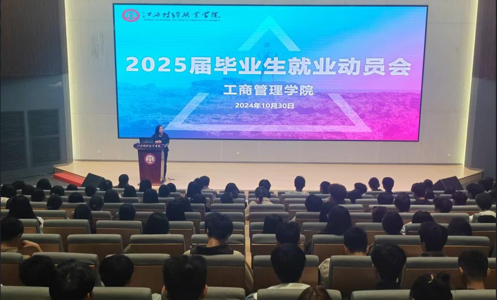 為促進2025屆畢業生充分了解就業形勢,引導同學們進行合理就業升學規劃,助推高質量就業,工商管理學院于10月30日下午,在行政樓一號報告廳召開了2025屆畢業生就業動員大會。2025屆全體本、??飘厴I學生、班主任及學院黨政班子成員參加會議。