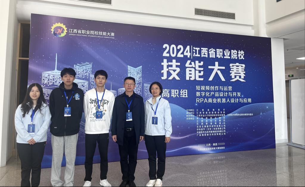 2024年11月1日,數字經濟學院副院長譚宏、指導教師李夢蕓和萬亞婷帶隊前往南昌參加由江西省教育廳主辦、江西泰豪動漫職業學院承辦的江西省職業院校技能大賽特色賽項RPA商業機器人設計與應用競賽。此次參賽隊伍一共有49支,數字經濟學院吳林東、曹東林憑借出色的表現,榮獲了全省二等獎。