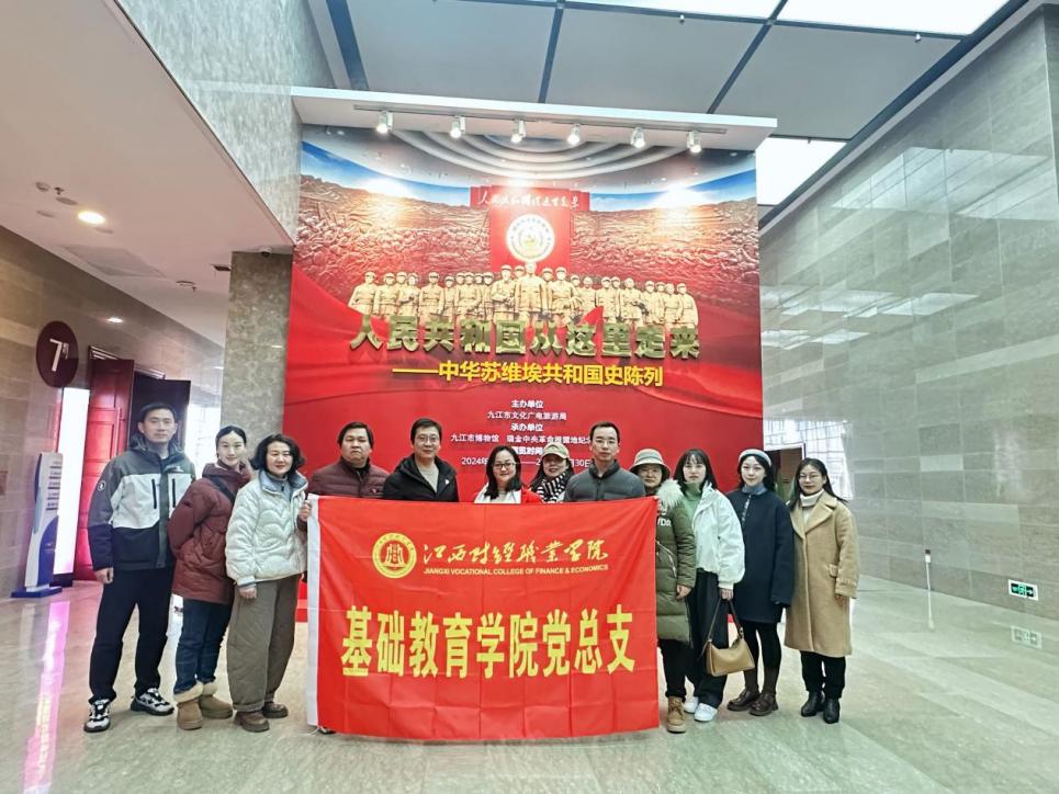 重溫建國歷史,堅守初心使命。為進一步強化黨員的身份意識和責任意識,增強黨組織的凝聚力和戰斗力,基礎教育學院教工黨支部組織黨員于2024年12月31日下午,前往九江市博物館參觀“人民共和國從這里走來”愛國主義展覽,開啟了一場深刻的建國歷史學習教育之旅。