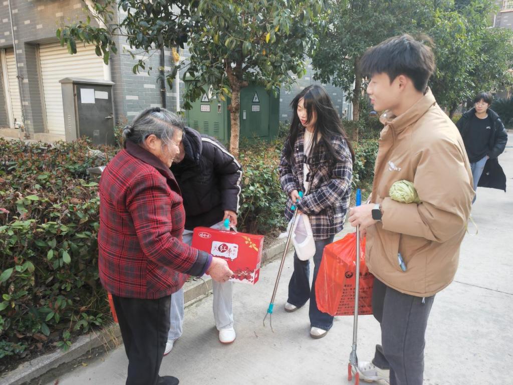 基礎(chǔ)教育學(xué)院青年志愿者們手持掃把、鉗子、垃圾袋等工具,在河畔花園小區(qū)花壇、街口巷道、居民樓窗戶等處撿拾紙屑、果皮、煙頭等各類垃圾。年若少時宜敬老,尊老敬老是中華民族的傳統(tǒng)美德,志愿者們圍繞在老人身邊,噓寒問暖拉家常,了解老人們的飲食起居與身體情況,幫助他們搬運重物,普及養(yǎng)生健身常識,倡導(dǎo)科學(xué)健身知識。