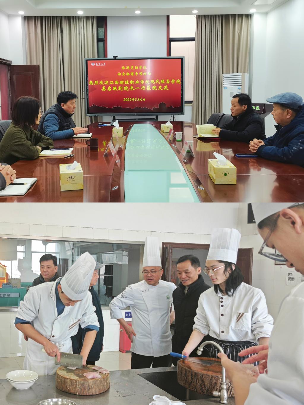 揚(yáng)州大學(xué)旅游烹飪學(xué)院領(lǐng)導(dǎo)和相關(guān)部門熱情接待了我校一行,雙方圍繞專業(yè)建設(shè)、人才培養(yǎng)和實(shí)訓(xùn)教學(xué)等內(nèi)容展開了深入交流。