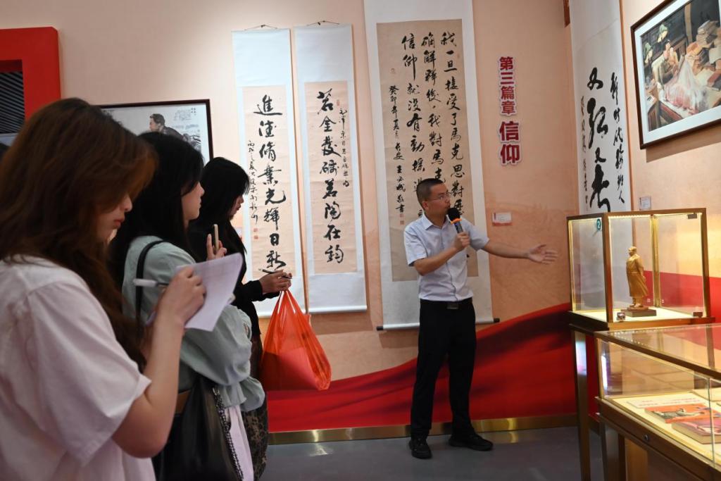在農耕文化館和國防科技館,學生變身“研學指導師”,教師團隊采用“觀察員”身份全程參與。同學們模擬真實研學活動場景,分組講解農耕文化館和國防科技館,教師團隊從課程設計、應變能力、安全管控、講解禮儀規范等6個維度記錄學生表現并給予評價。