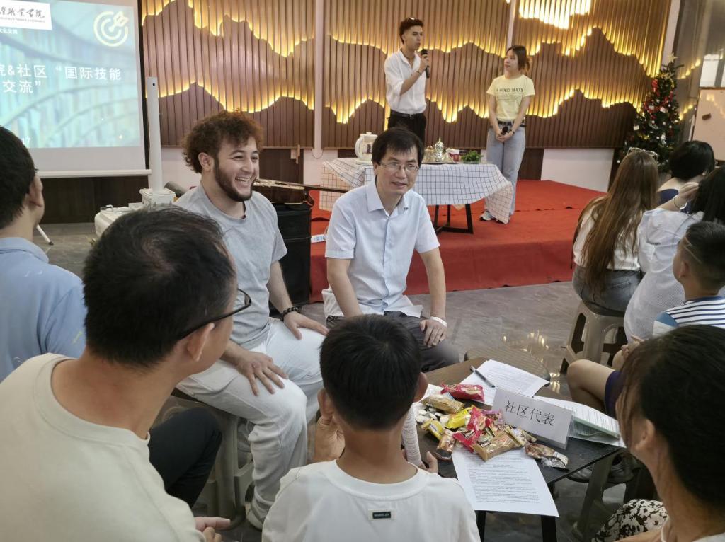 (社區(qū)代表與中外學(xué)生老師進行職業(yè)技能交流)