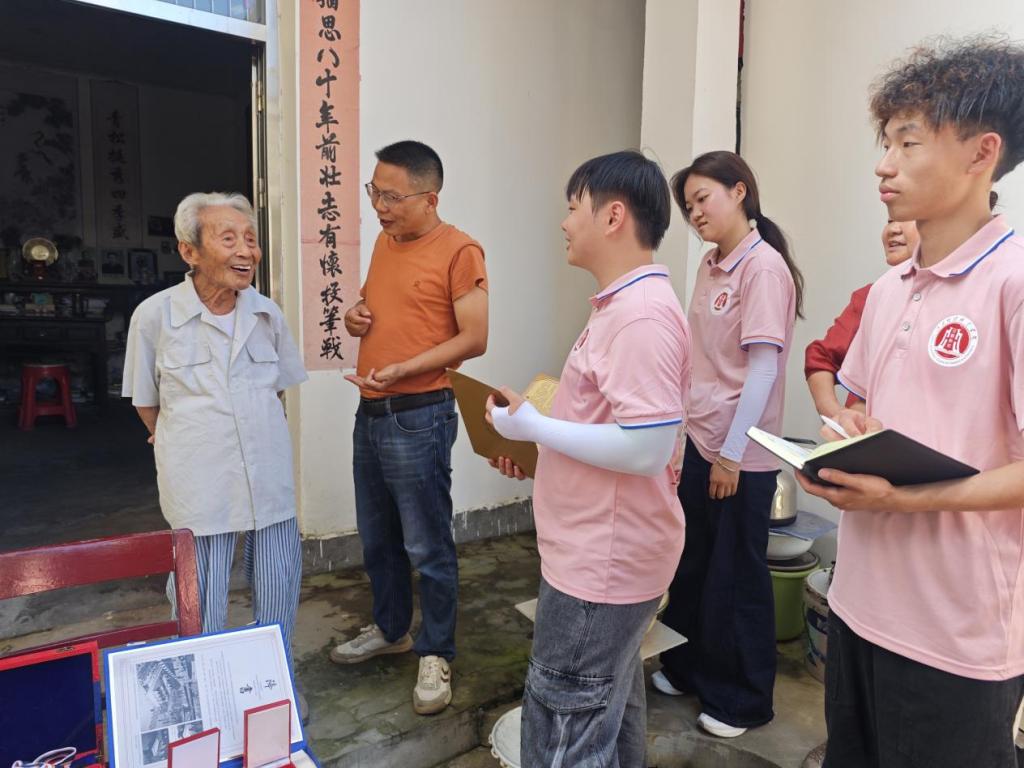 值此中國共產(chǎn)黨成立104周年、抗日戰(zhàn)爭勝利80周年之際,工商管理學院“三下鄉(xiāng)”社會實踐服務隊于6月30日,深入彭澤縣黃花鎮(zhèn)新民村,同村支部書記高金高一起走訪慰問抗戰(zhàn)老兵高凱初爺爺。聆聽抗戰(zhàn)故事,傳承紅色基因,踐行青春使命。