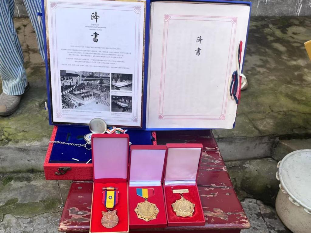 實踐隊員們來到抗戰(zhàn)老兵的家中,了解他經(jīng)歷的崢嶸歲月和目前的生活狀況。高老如今已百歲高齡,但談到過往,眼里依然充滿著當年的那份豪情,指著那一枚枚軍功章,給隊員們講述著抗日戰(zhàn)場的那些過往和經(jīng)歷。老人兒時在本村私塾啟蒙,1938年馬當淪陷,隨全家流亡。1939年以陷區(qū)難童身份,入浮梁中學插班初二。1943年考取國立中正大學語文系,此時正值國勢垂危,遂投筆從戎,考入黃埔軍校瑞金分校二十期步科班。不久長衡會戰(zhàn)暴發(fā),全校學生奉令,參加紙山阻擊戰(zhàn)。堅守陣地七天,激戰(zhàn)三晝夜,直到國軍接防,才撤出陣地返校。畢業(yè)后,歷任七十二軍排長、副連長,團作戰(zhàn)參謀等職。1956年入新民小學任教,1988年退休,著有《烽火華年》《彭蠡秋吟》《小院秋燈》等集。總予一生,艱苦備嘗,戰(zhàn)爭時期棄筆從戎,和平年代教書育人,老人為中華民族興亡浴血奮戰(zhàn),也為培育祖國的“花朵”奉獻一生。老人的回憶為實踐團隊成員和志愿者們真實展示了那段艱苦卓絕、浴血奮戰(zhàn)、舍身報國、甘愿奉獻的歷史。