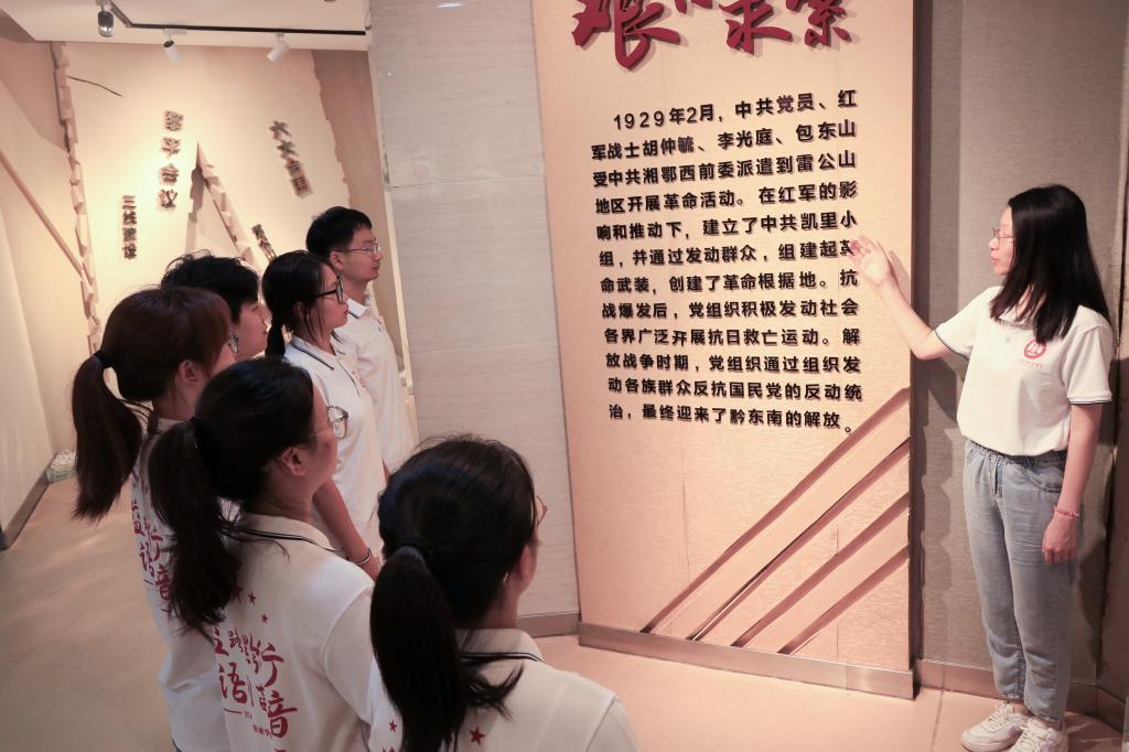 實踐隊隊員專程前往凱里黨史陳列館參觀學習,在泛黃的史料、斑駁的實物前,隊員們仔細聆聽黔東南地區的革命故事,感受當地與江西紅色血脈相通的奮斗歷程。從紅軍長征過黔東南的足跡到各族群眾支援革命的事跡,隊員們邊學習邊記錄,將這些紅色素材轉化為推普思政課的生動教材,為后續走進校園播撒紅色種子筑牢基礎。
