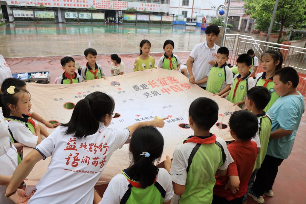 實踐隊員們為孩子們精心準備了“長征路上的故事”思政課。課堂上,隊員們用飽含深情且標準流利的普通話,將紅軍長征途中爬雪山、過草地、飛奪瀘定橋等經典事跡娓娓道來。孩子們聚精會神地聆聽,被先輩們堅定的信念和頑強的意志所打動,在學習普通話的同時,也深刻領悟到了長征精神的內涵,心中種下了紅色的種子。