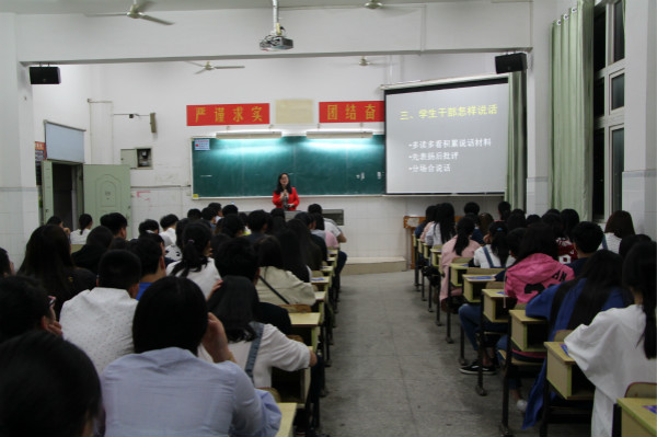 呂揚副教授的講座分為說話的前提、會說話的魅力、學生干部怎樣說話、學生干部的演講藝術、學生干部日常生活說話藝術等五個方面。